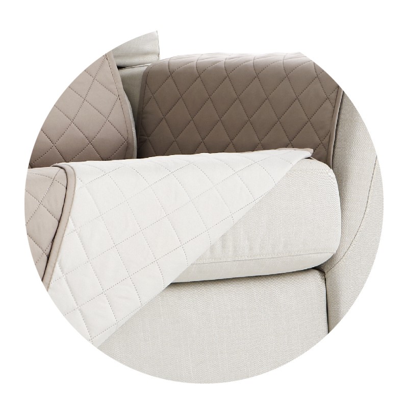 Couch Cover Reversible quilted corner sofa cover. Perfect for protecting corner sofas. Featuring a peach-touch microfibre fabric with an incredibly comfortable soft and fluffy feel. It’s easy to wash and has elastic straps attached to the back, making it both practical and adjustable. Available in two different corner sofas sizes.