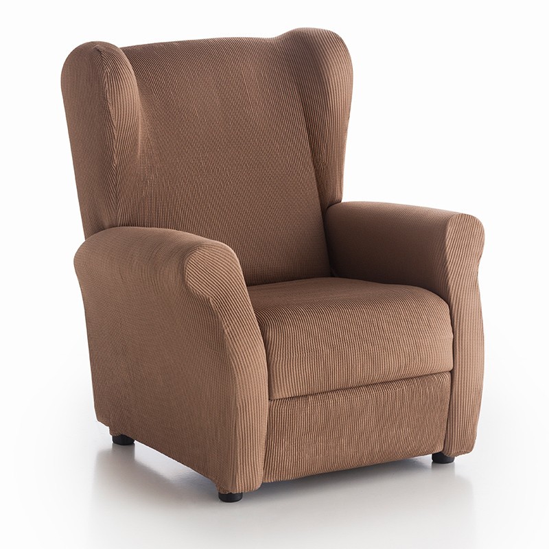 Stretch relax armchair cover Strada. This cover is suitable for mechanized relax armchairs whose footrest is independent of the seat, with standard shapes, for wing chairs or normal armchairs. This product cover the entire relax armchair and is composed of several pieces. The result is ideal and offers an excellent use. The cover do not move when using the function relax.